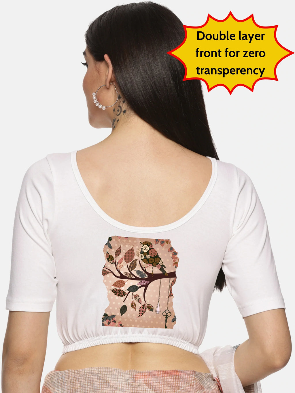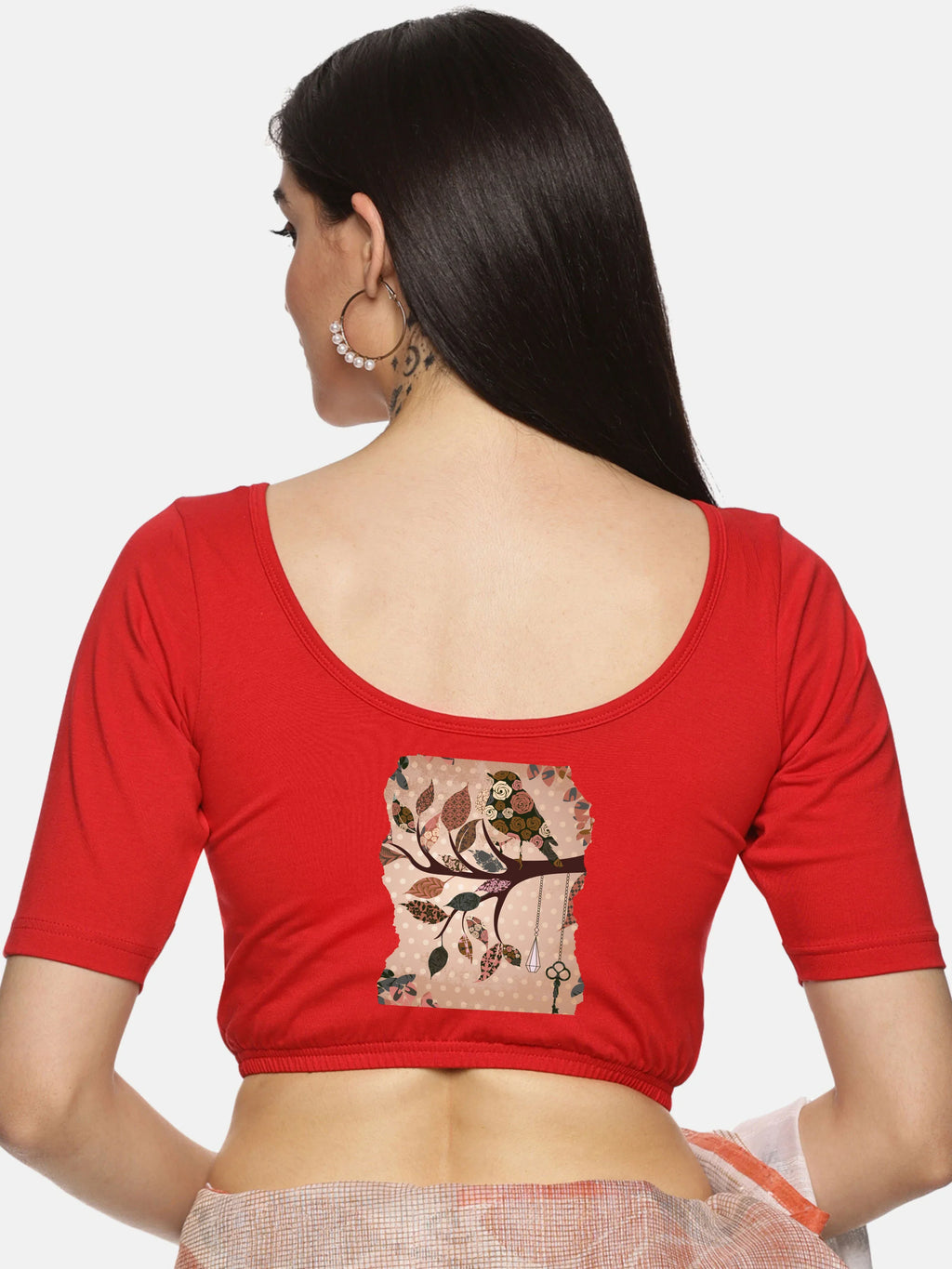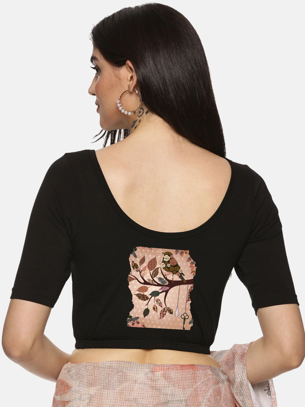 Women Back Printed Stretchable Blouse U033