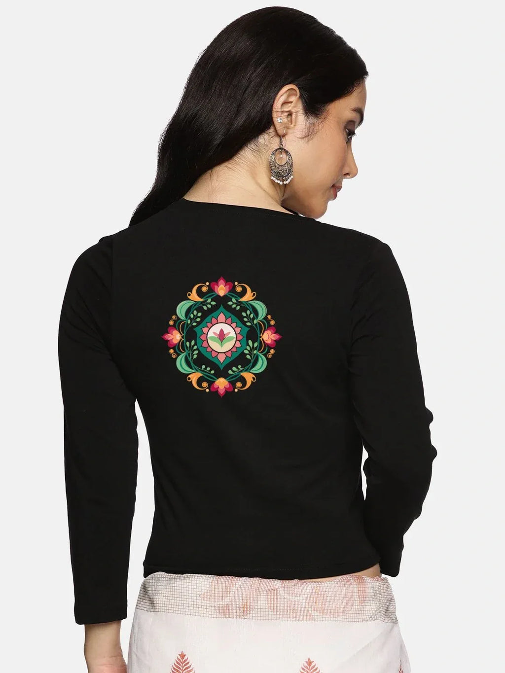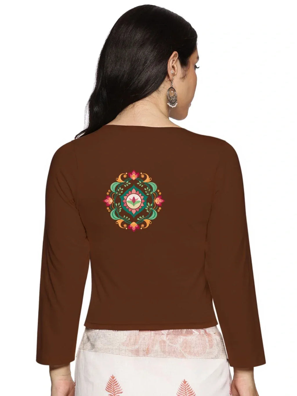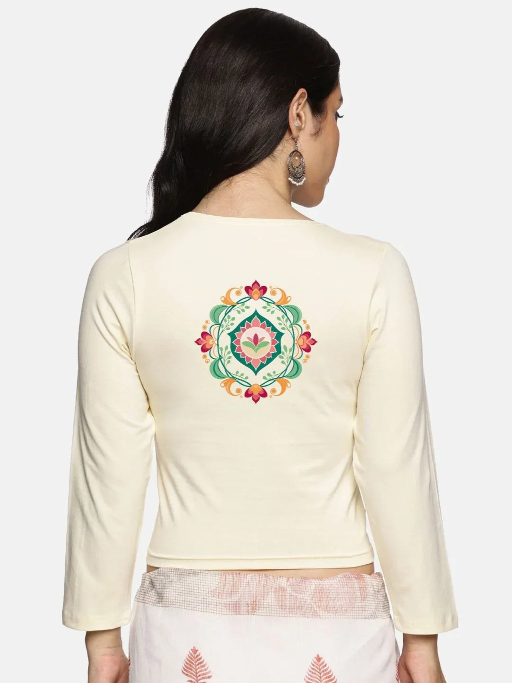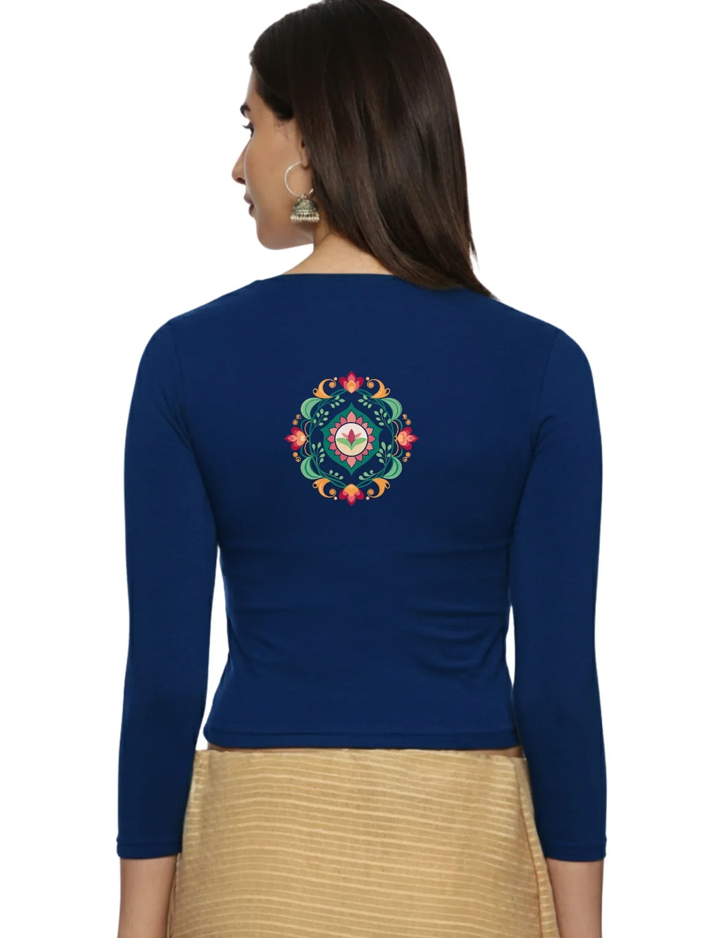 Women Three Fourth Sleeve Back Print Stretchable Blouse U0104