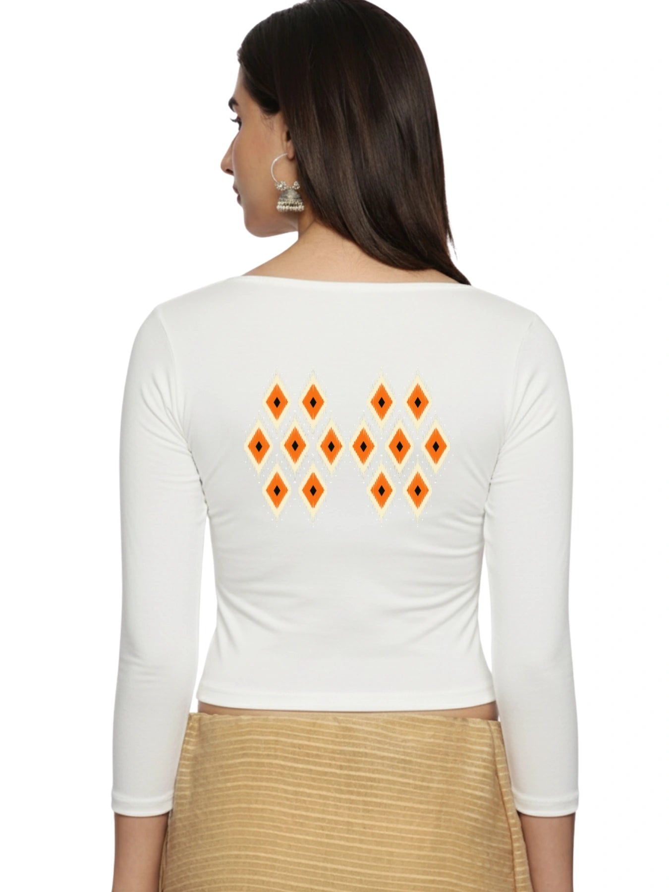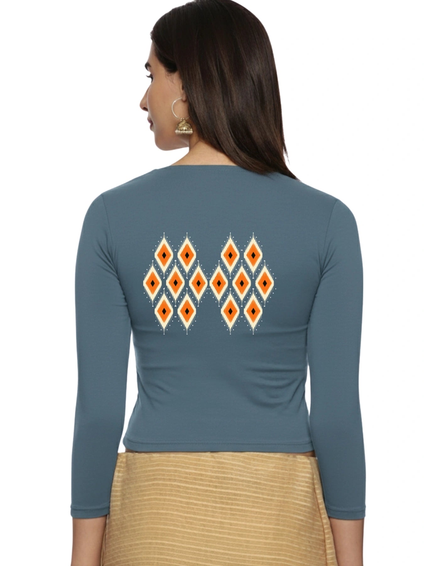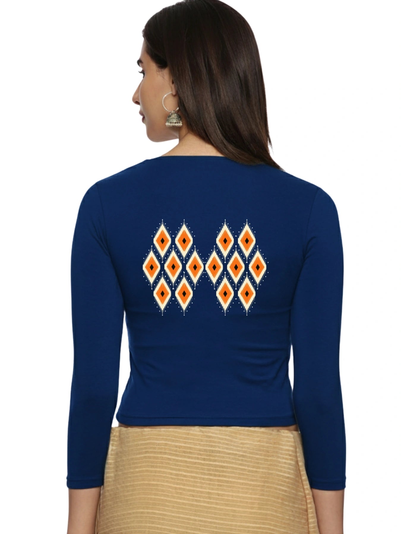 Women Three Fourth Sleeve Back Print Stretchable Blouse U0105