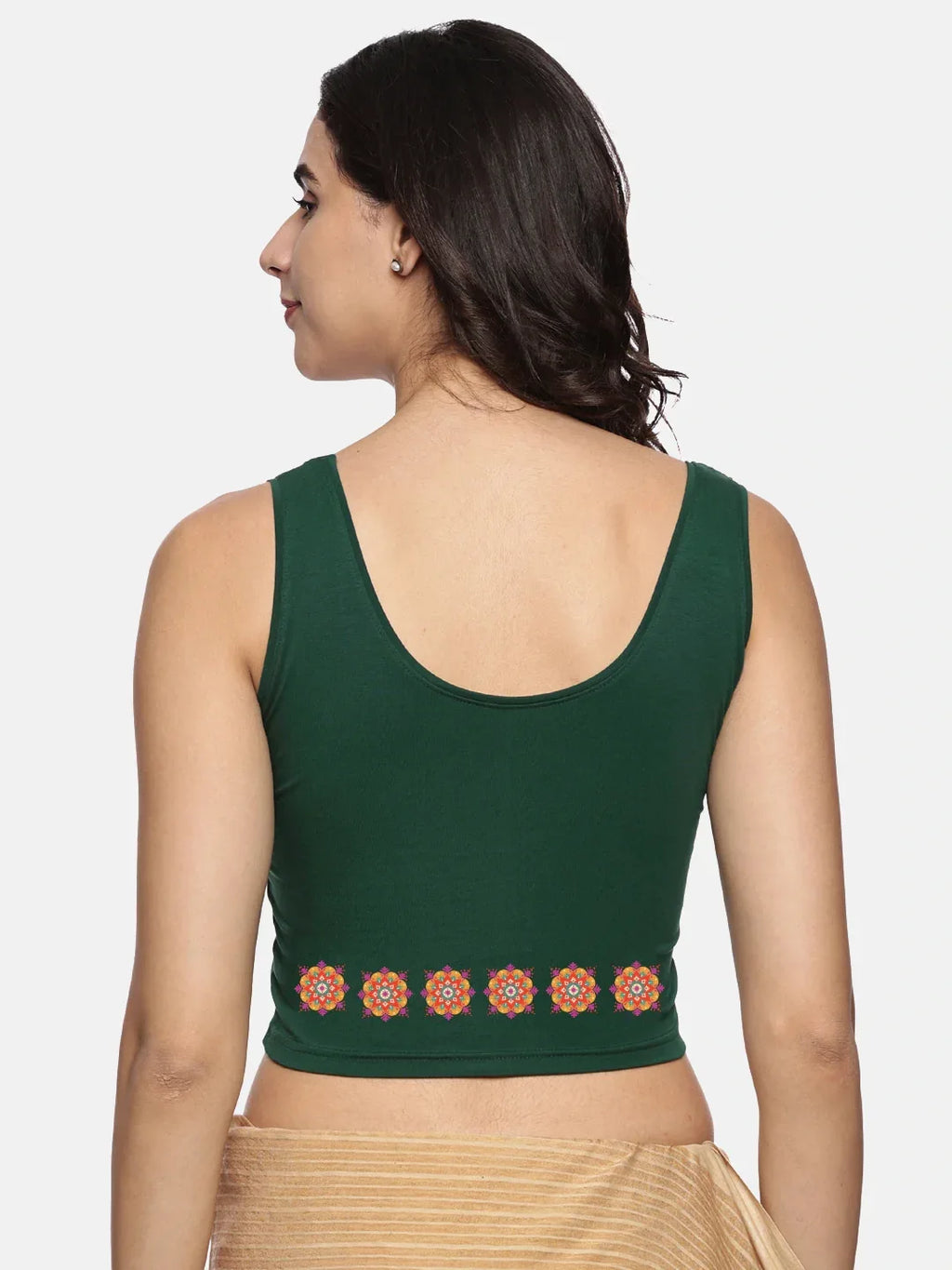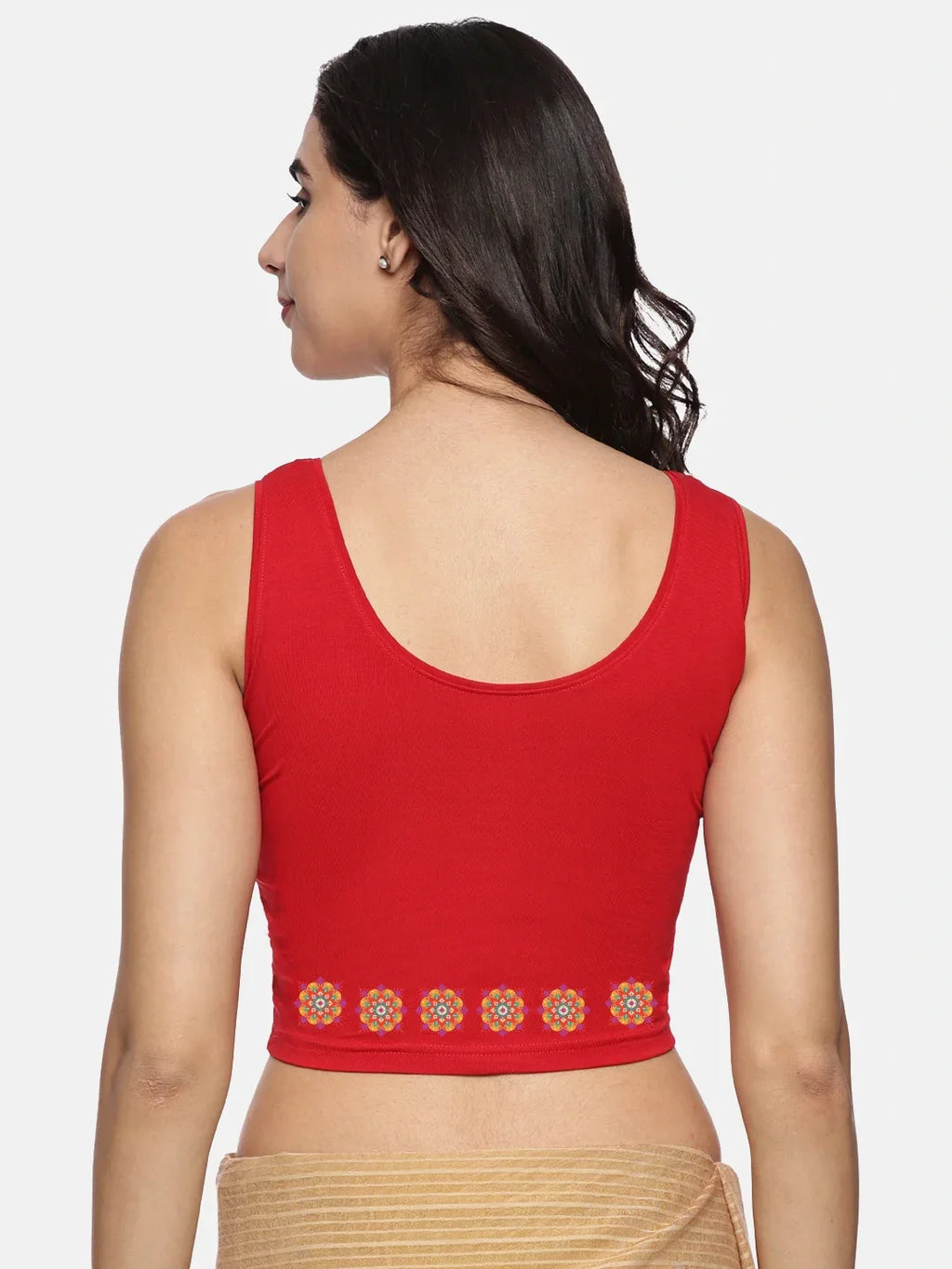 Women Sleevless Back Printed Stretchable Blouse U0210